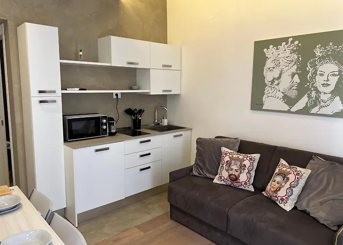 O apartamento Lady F Apartment oferece cozinha totalmente equipada, bem como quartos com varanda, sofá e equipamentos para chá/café . Igreja do Purgatório é localizado a 0.6 km de apartamento, enquanto Museo Regionale Pepoli é de 3 km de distância.